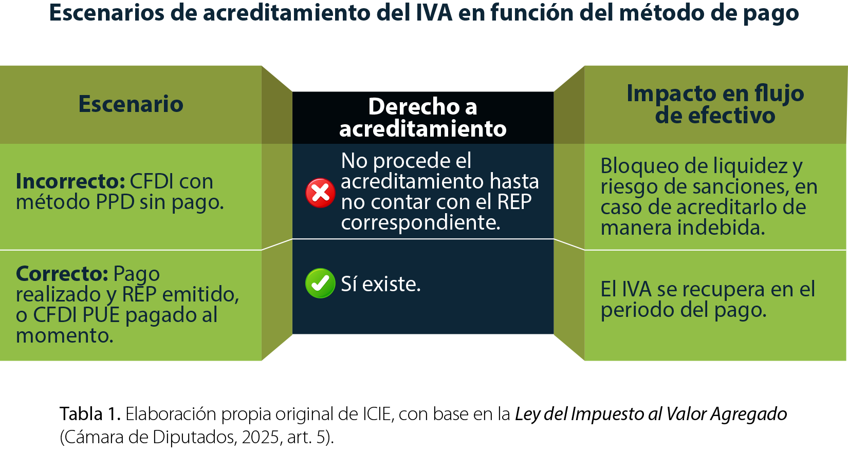 En operaciones específicas (como créditos mercantiles documentados), el IVA puede acreditarse antes del pago, pero solo bajo requisitos legales muy precisos.
