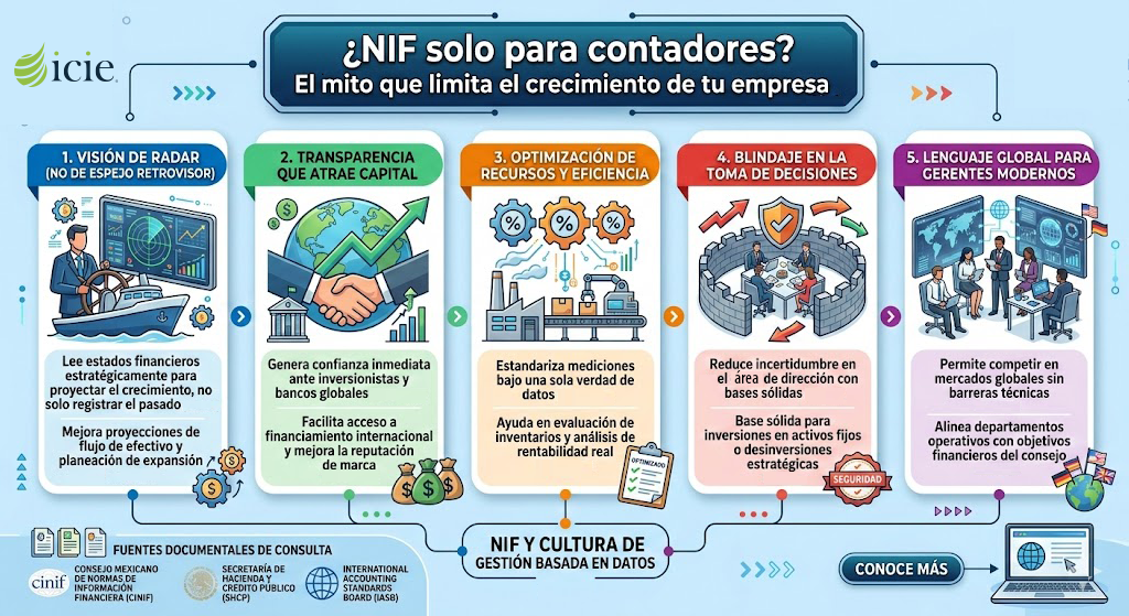 Si buscas que tu empresa no solo sobreviva, sino que escale, es imperativo que la dirección domine estos conceptos desde una perspectiva de liderazgo. Una excelente forma de cerrar esta brecha entre lo técnico y lo estratégico es participar en espacios de actualización como el Seminario de Implicaciones Fiscales de las NIF, donde la normativa se analiza no como un fin, sino como un medio para la toma de decisiones informada.
